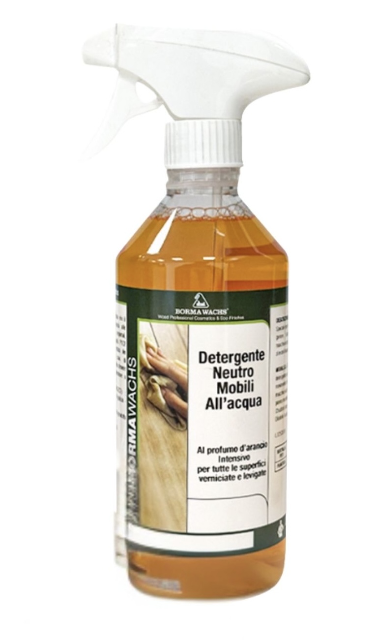 Detergente neutro para muebles a base de agua, a base de aceite esencial de naranja y con pH neutro, es excelente para la limpieza de muebles de madera lacados y aceitados.